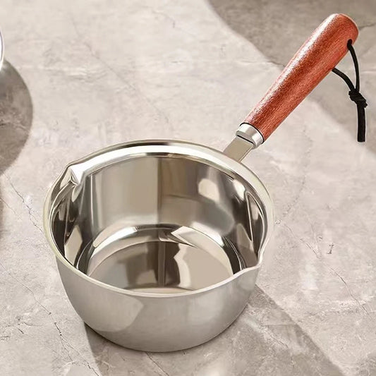 Casserole en acier inoxydable avec manche en bois